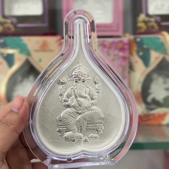 Pure Silver Ganesh Ji Leaf Photo Frame | 999 Silver Hallmarked | (Medium)