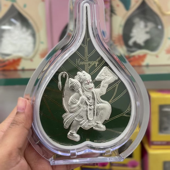 Pure Silver Hanuman Ji Green Leaf Photo Frame | 999 Silver Hallmarked | (Large)
